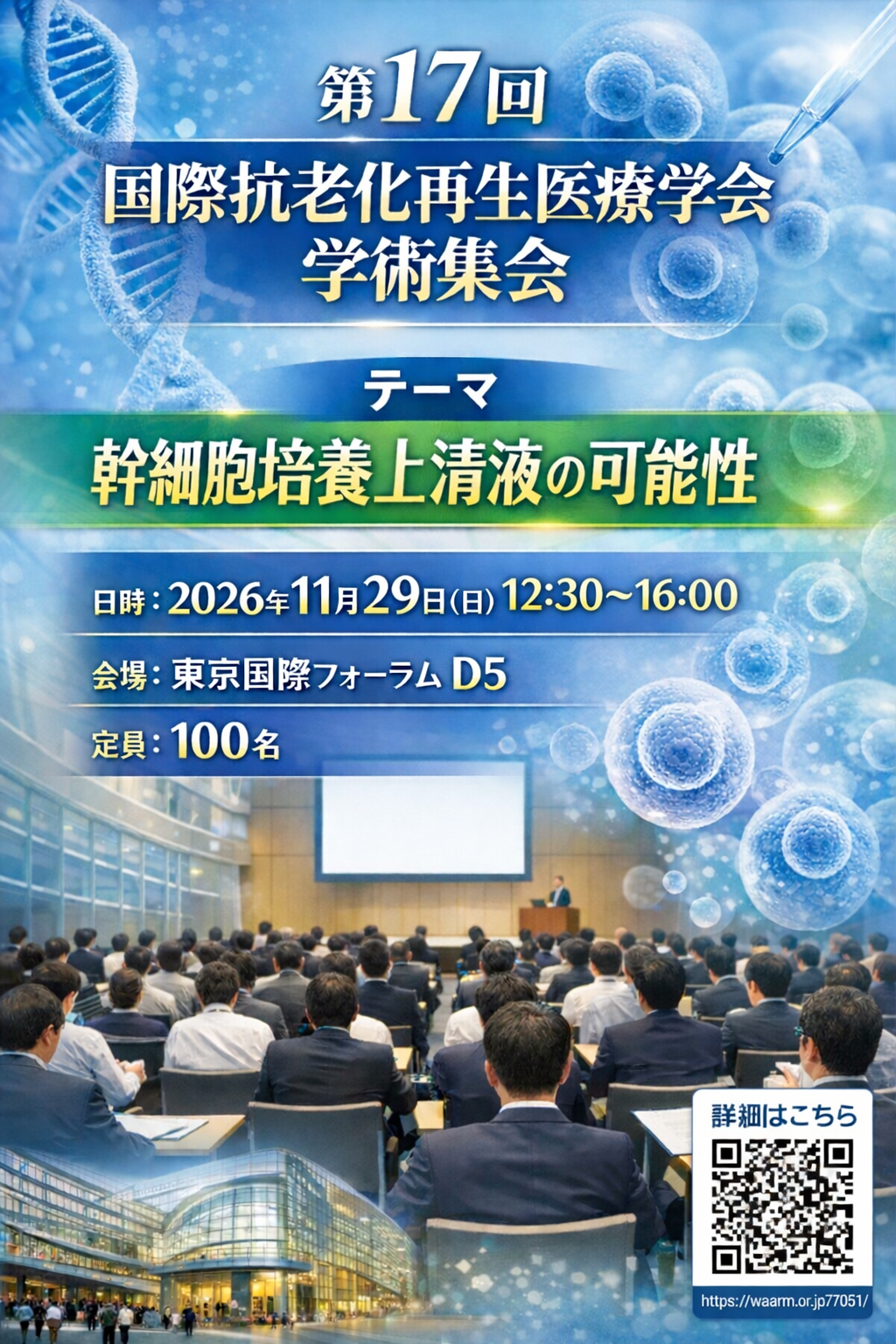 【問合せ】 国際抗老化再生医療学会事務局:野村 info@waarm.or.jp